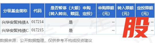 本站消息粤友配资,6月18日兴华基金管理有限公司发布《兴华安聚纯债债券型证券投资基金暂停个人投资者申购、转换转入、定期定额投资业务的公告》。公告中提示,为保护现有基金份额持有人利益,保障基金平稳运作,自2025年6月18日起兴华安聚纯债债券型证券投资基金暂停个人投资者申购、转换转入、定期定额投资业务,下属分级基金调整明细如下: